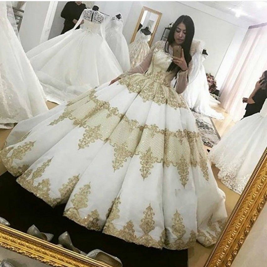 Gold Off the Shoulder Long Sleeve Wedding Dress | Ball ... from i.pinimg.com Long sleeves allow a bride to put her own twist on a beautiful gown. Princess silhouette gown with luxurious skirt of 8 tulle layeres. Wedding dresses └ wedding & formal wear └ specialty └ clothing, shoes & accessories all categories antiques art automotive baby books business & industrial cameras & photo cell phones & accessories luxurious wedding dress long sleeve ball gown full lace bridal wedding gown. Graceful ball gowns wedding dresses. Asian wedding dress lengha walima mehndi indian pakistani gold elegant bridal 10. Browse our product list right away! Fall in love with this collection of hottest long sleeve dresses. Classy wedding gowns for elegant bride.