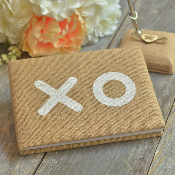 Wedding collection burlap guest book and pen set gartner studios.